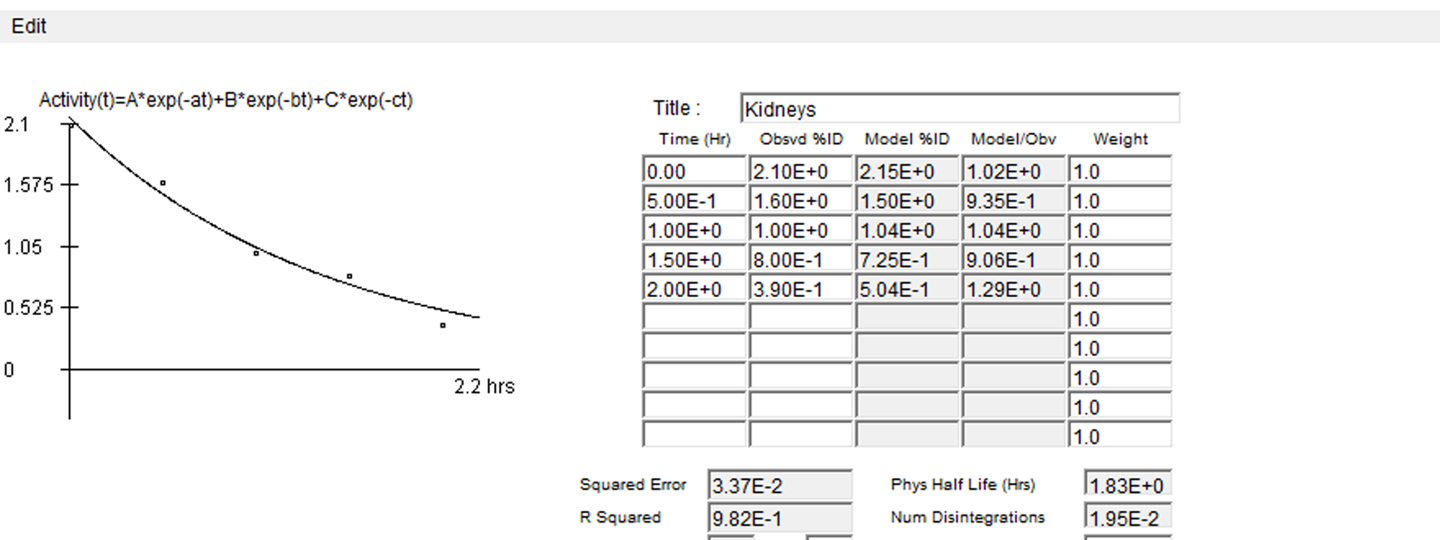- Internal radionuclide dosimetry calculation either from direct input of organ residence time data or from organ % I.D.