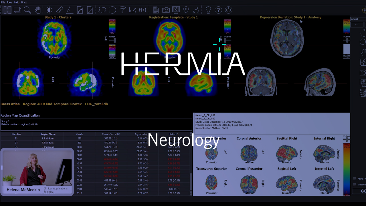 Hermia Neurology (BRASS) has an automated workflow where data is processed, quantified, and displayed in seconds. Ideal for Alzheimer’s disease diagnosis.